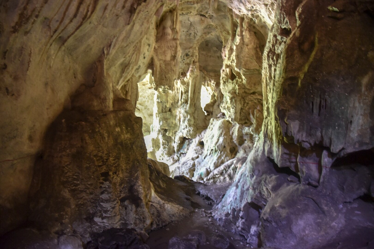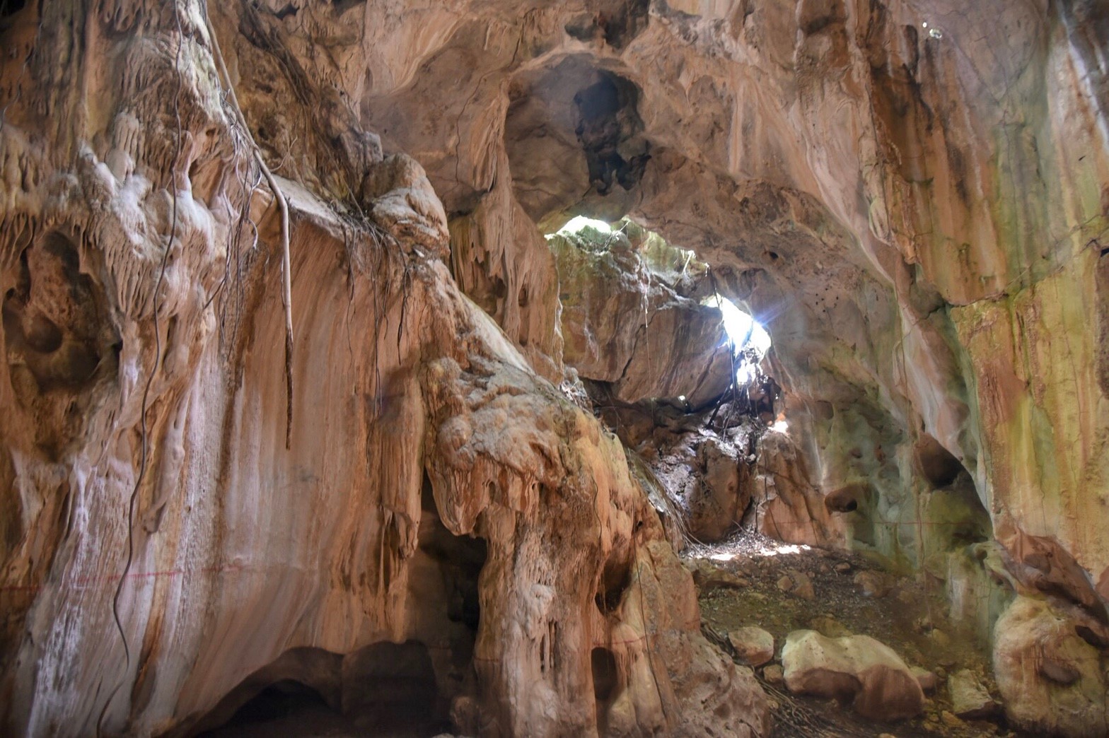 หลักฐานทางประวัติศาสตร์ ได้แก่ โครงกระดูกมนุษย์ (ไม่ครบส่วน) กระดูกและฟันสัตว์ มีทั้งสัตว์เลี้ยงลูกด้วยนม สัตว์ครึ่งบกครึ่งน้ำ สัตว์ปีกเปลือกหอยชนิดต่างๆ ได้แก่ หอยบก หอยน้ำจืด หอยทะเล ชิ้นส่วนก้ามปูเสม็ด พืชป่าบางชนิดเศษภาชนะดินเผา เนื้อดินธรรมดา ตกแต่งหินด้วยลายเชือกทาบมีรูปทรงต่างๆกัน คือ หม้อก้นกลมแบบหมอหุงช้าว หม้อสามขา หม้อมีสัน เปลือกไม้ กำไลหินแท่นรองหม้อ ลูกกระสินดินเผา สำหรับเครื่องมือหิน เครื่องใช้ที่พบจากหลุมขุดค้นในถ้ำเบื้องแบบปัจจุบันโบราณวัตถุเหล่านี้ได้เก็บรวบรวมไว้ที่ กองโบราณคดี กรมศิลปกร