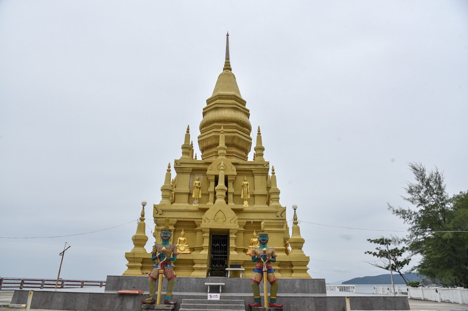 ตั้งอยู่ทางตอนใต้ของเกาะ อยู่ระหว่างบ้านทะเลและบ้านพังกา บนถนนสาย 4170 จะมีป้ายบอกทางให้เลี้ยวซ้ายเข้าไปจนสุดทางก็จะถึงวัดแหลมสอ
